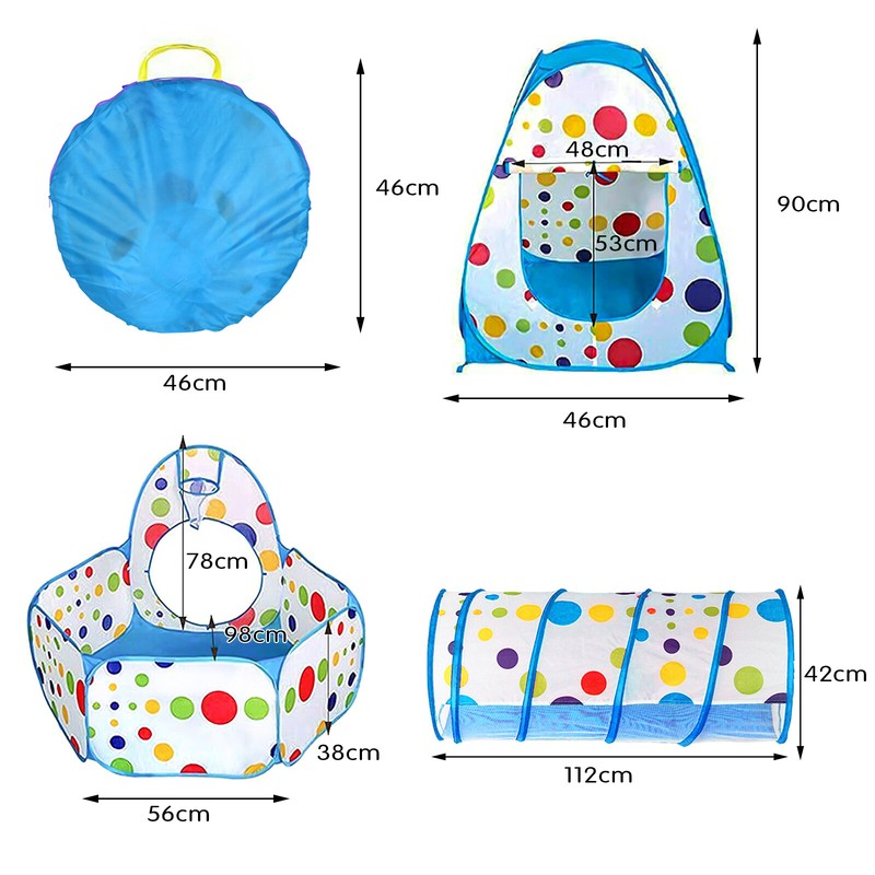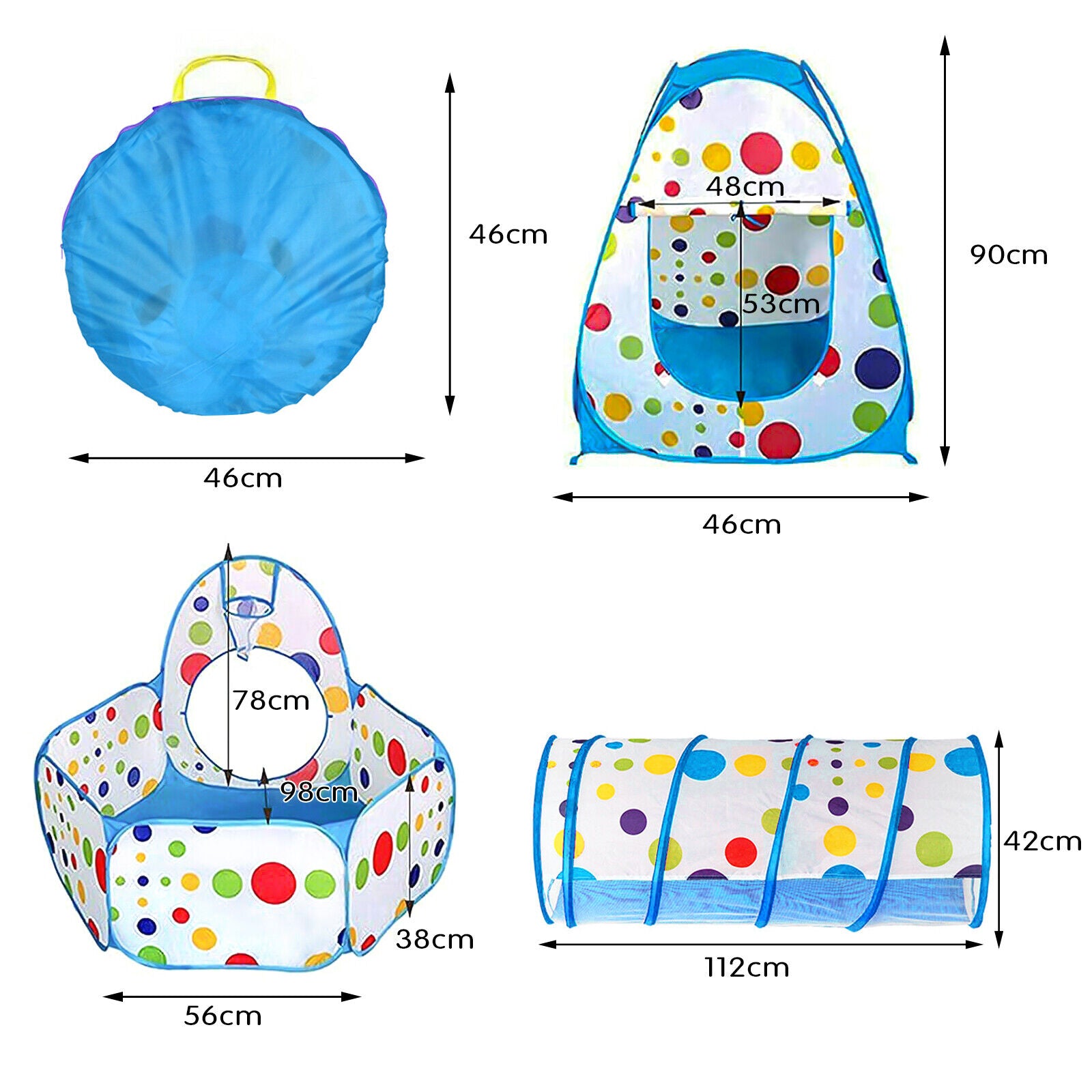 3 in1 Kids Play Tent Baby Tunnel Ocean Ball Pit Toy Playhouse Playhouse for Kids